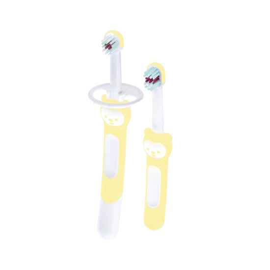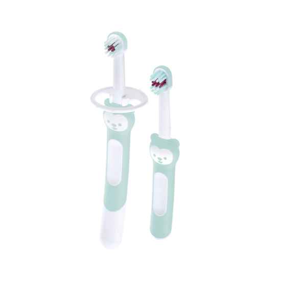 Con el set Learn to Brush Set, que consiste en el MAM Training Brush y el MAM Baby’s Brush, los bebés aprenden a cepillarse los dientes correctamente desde el principio.